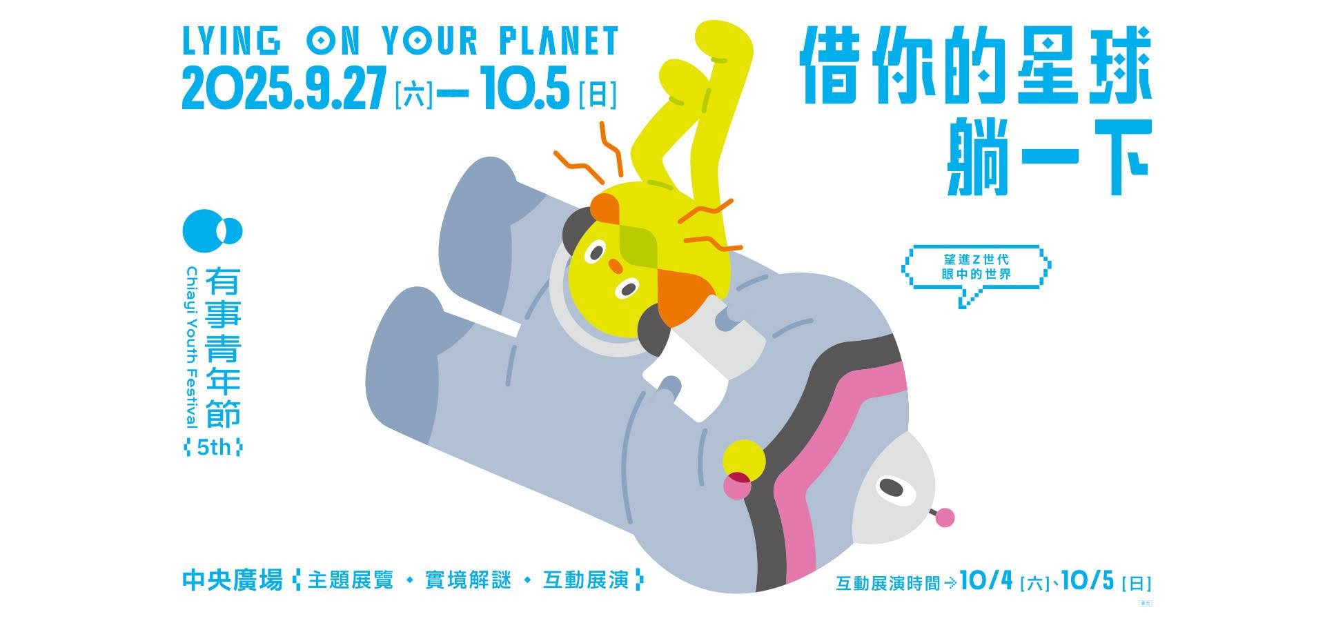 今年,作為博覽會的重要前導活動,第五屆「有事青年節」 以「借你的星球躺一下」為題,將延續我們對青年的深度陪伴與公共倡議精神,我們誠摯邀請各位前往彼此軌道,登陸對方的世界,在差異中找到連結,在陌生中發現共鳴。
