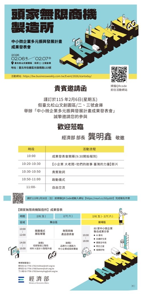 【資訊分享】2/6-2/7 經濟部中小及新創企業署「中小微企業多元振興發展計畫成果發表會」(免費參加)